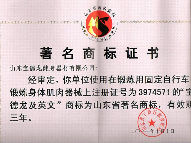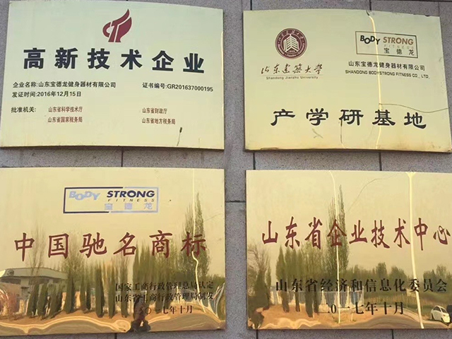 寶(bao)德龍成立15周(zhou)年;榮獲(huo)“高新技(ji)術(shu)企業”“中(zhong)國(guo)(guo)健(jian)身(shen)(shen)器材(cai)生(sheng)產(chan)基地(di)”“中(zhong)國(guo)(guo)著名品牌”“中(zhong)國(guo)(guo)知名品牌”“中(zhong)國(guo)(guo)健(jian)身(shen)(shen)器材(cai)行業領先(xian)品牌”等殊(shu)榮,旗下多項產(chan)品榮獲(huo)“金橋獎(jiang)”“中(zhong)國(guo)(guo)制造之美”等證(zheng)書