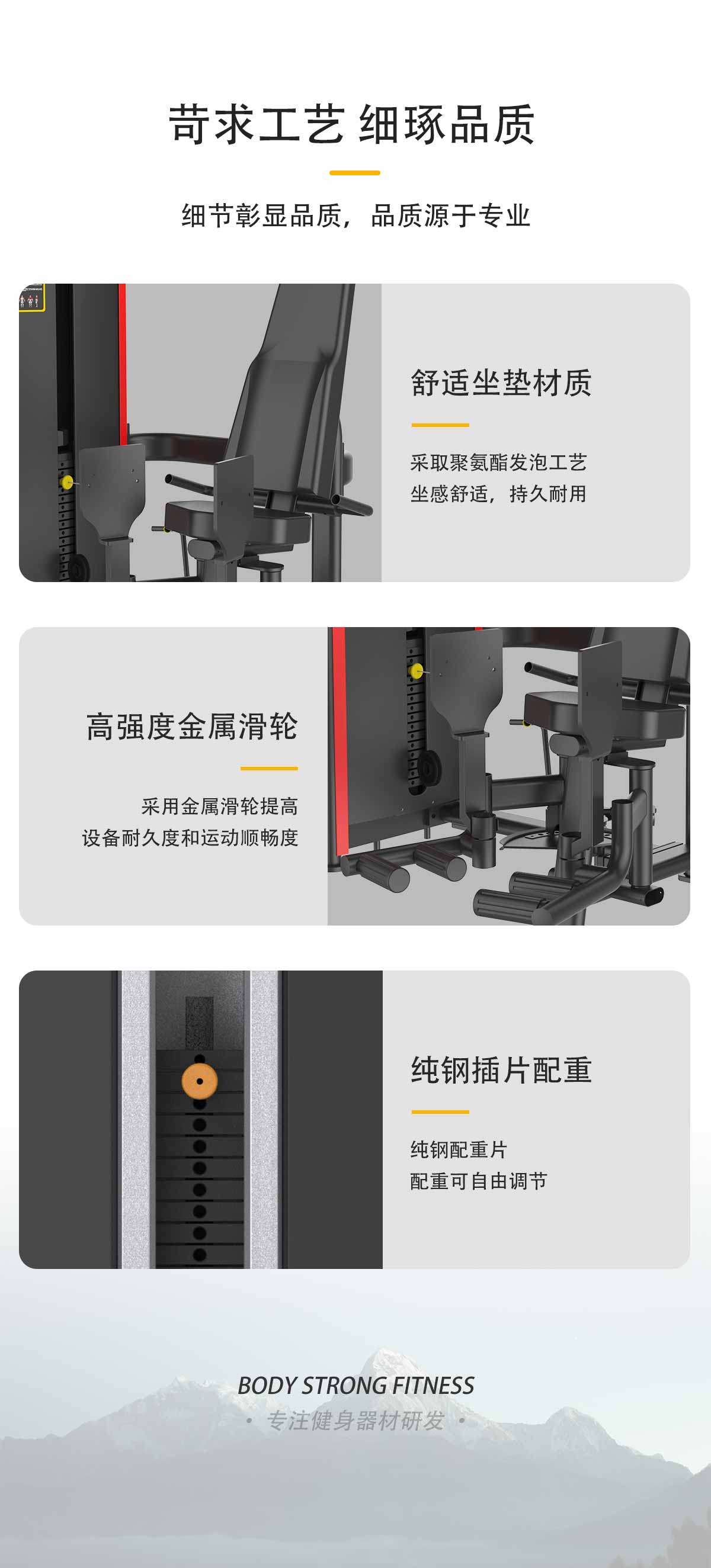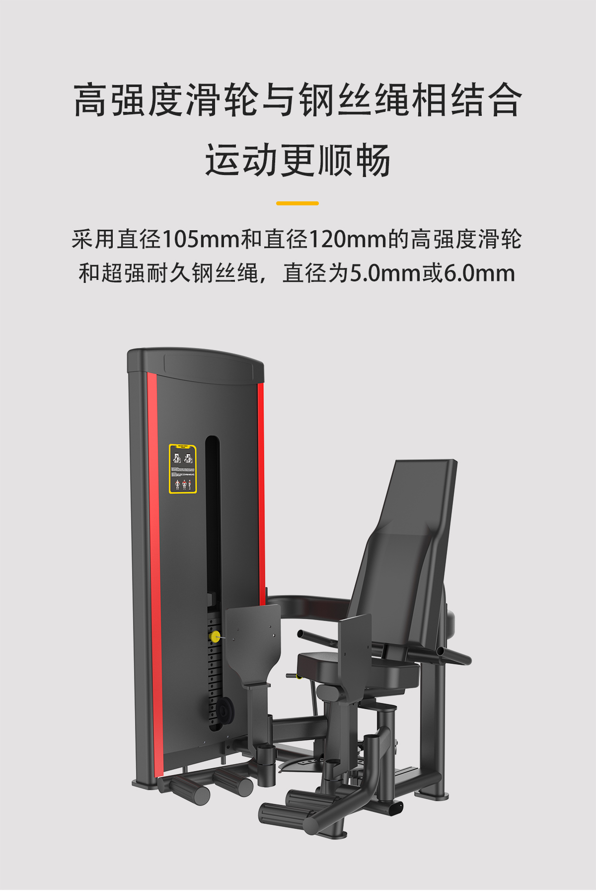 配重采用強磁插銷,一次性成型坐墊,高檔優質滑輪及鋼絲繩