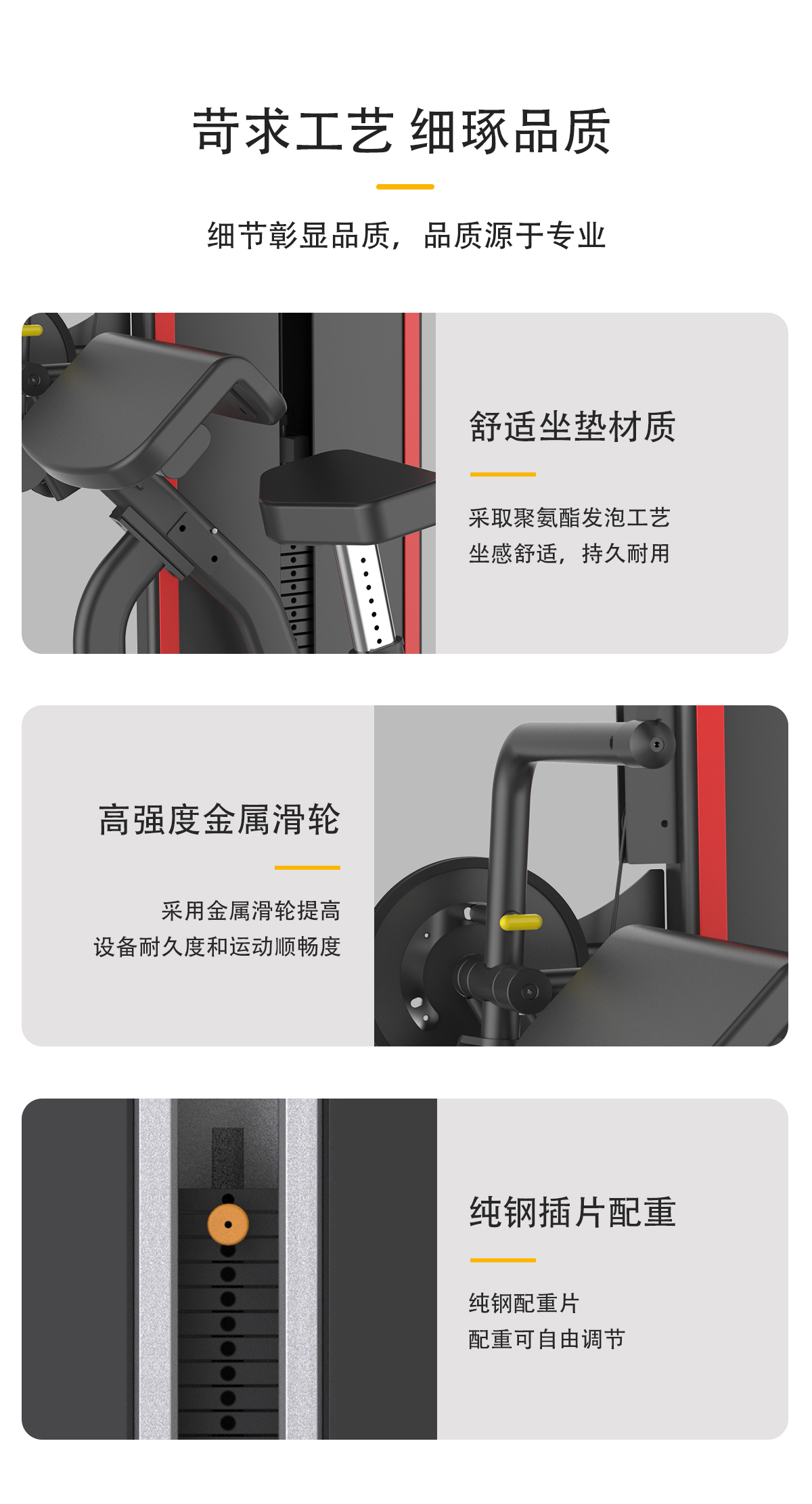 配重采用強磁插銷,一次性成型坐墊,高檔優質滑輪及鋼絲繩