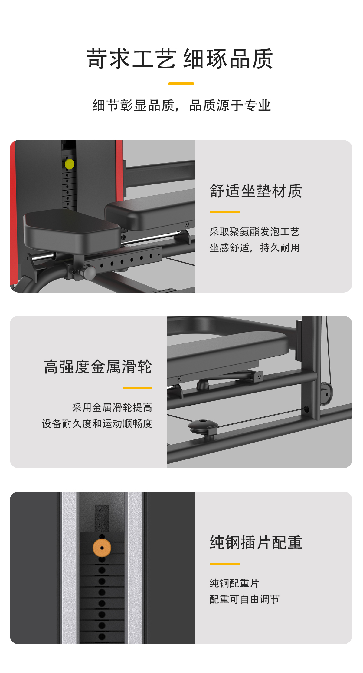 配重采用強磁插銷,一次性成型坐墊,高檔優質滑輪及鋼絲繩