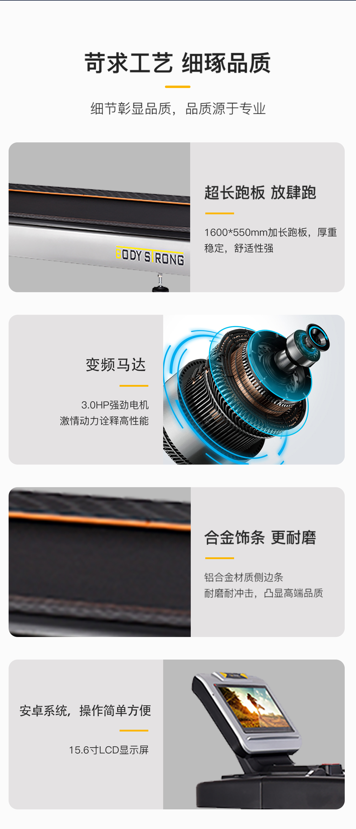 安卓系統,操作簡單方便。面板上為 15.6寸LCD顯示屏,除了傳統的心跳檢測、時間、運動程序外,還可以利用WIFI來看新聞、看影片