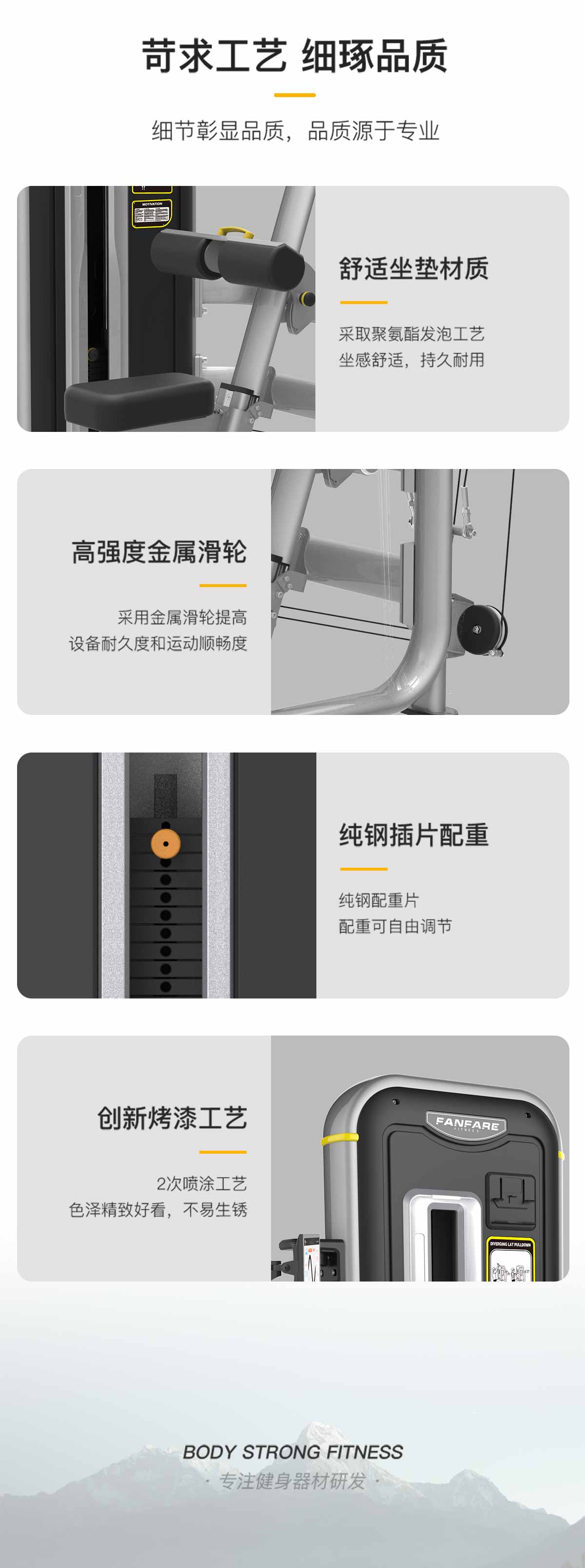 管材采用橢圓管與圓管,高精密滑輪,超耐用鋼絲繩,智能屏幕檢測用戶訓練情況。
