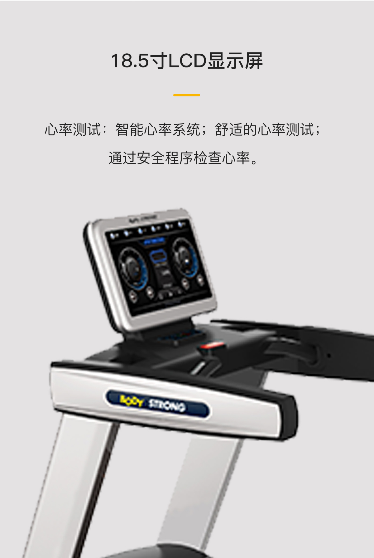 18.5寸LCD顯示面板,智能心率系統,關鍵時刻可以按壓中心緊急按鈕。