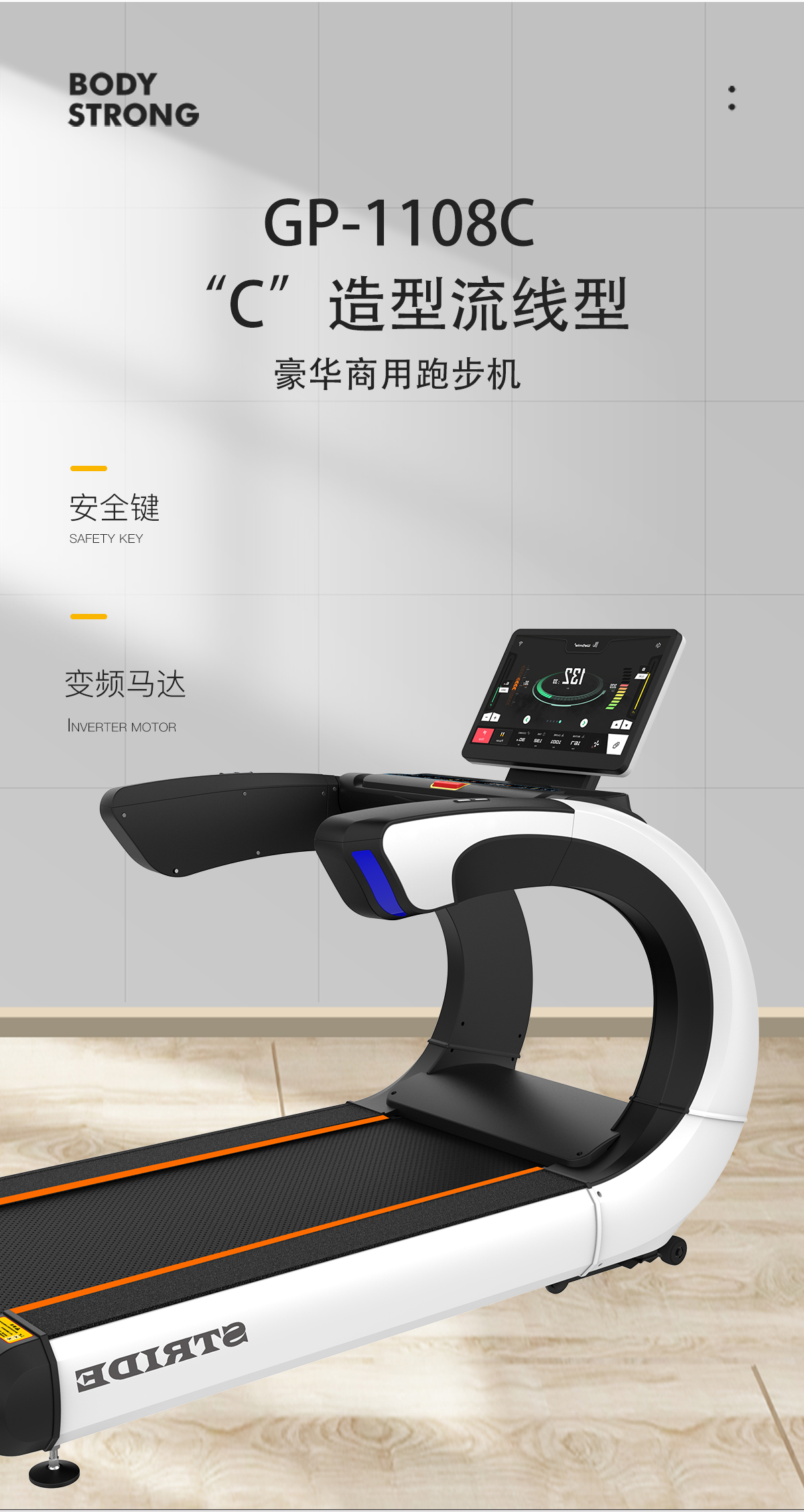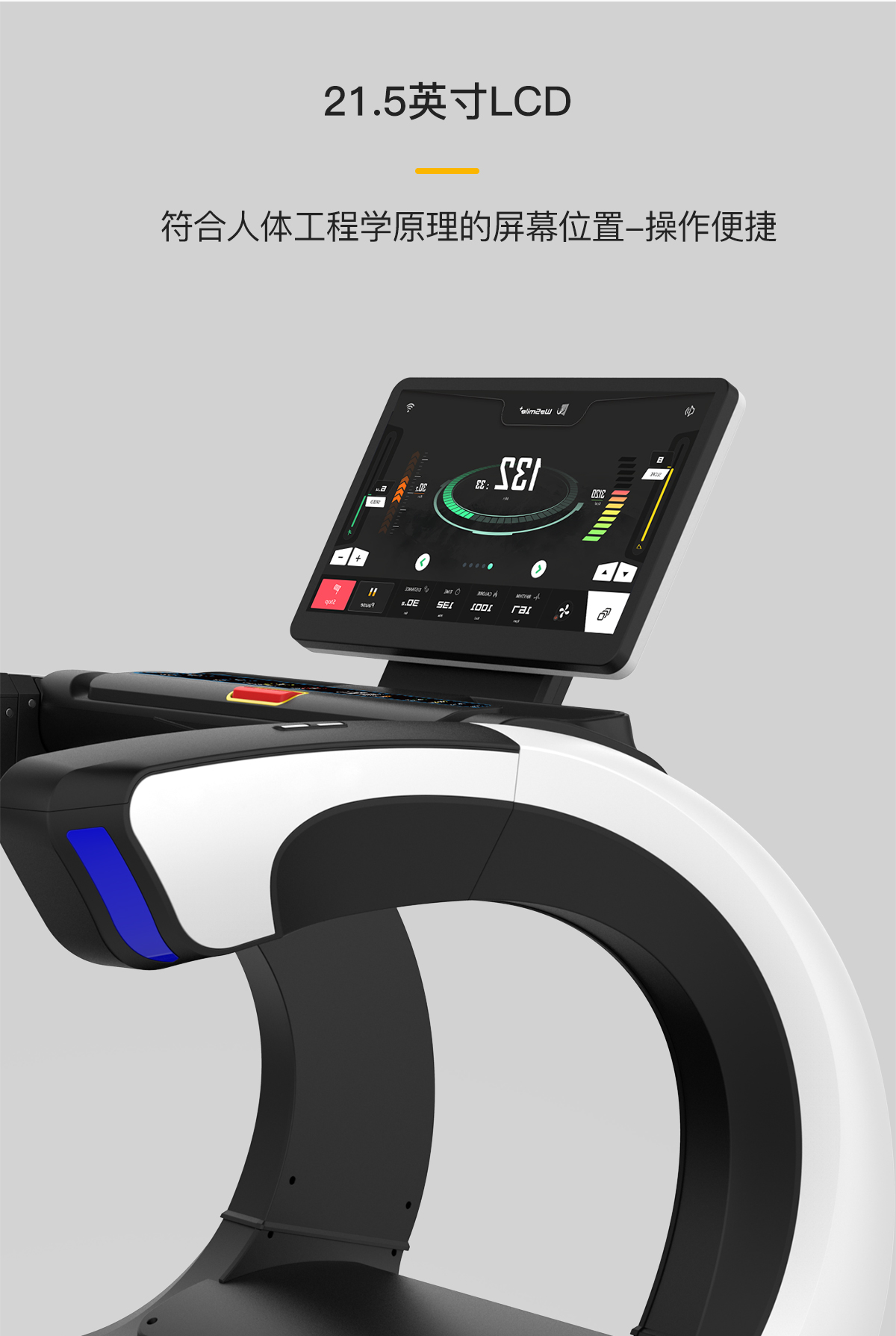 “C”造型流線型設計,現代 簡潔 科技感十足,立柱和跑臺以白色為主,配以黑色環保材料,形成鮮明對比,特點突出