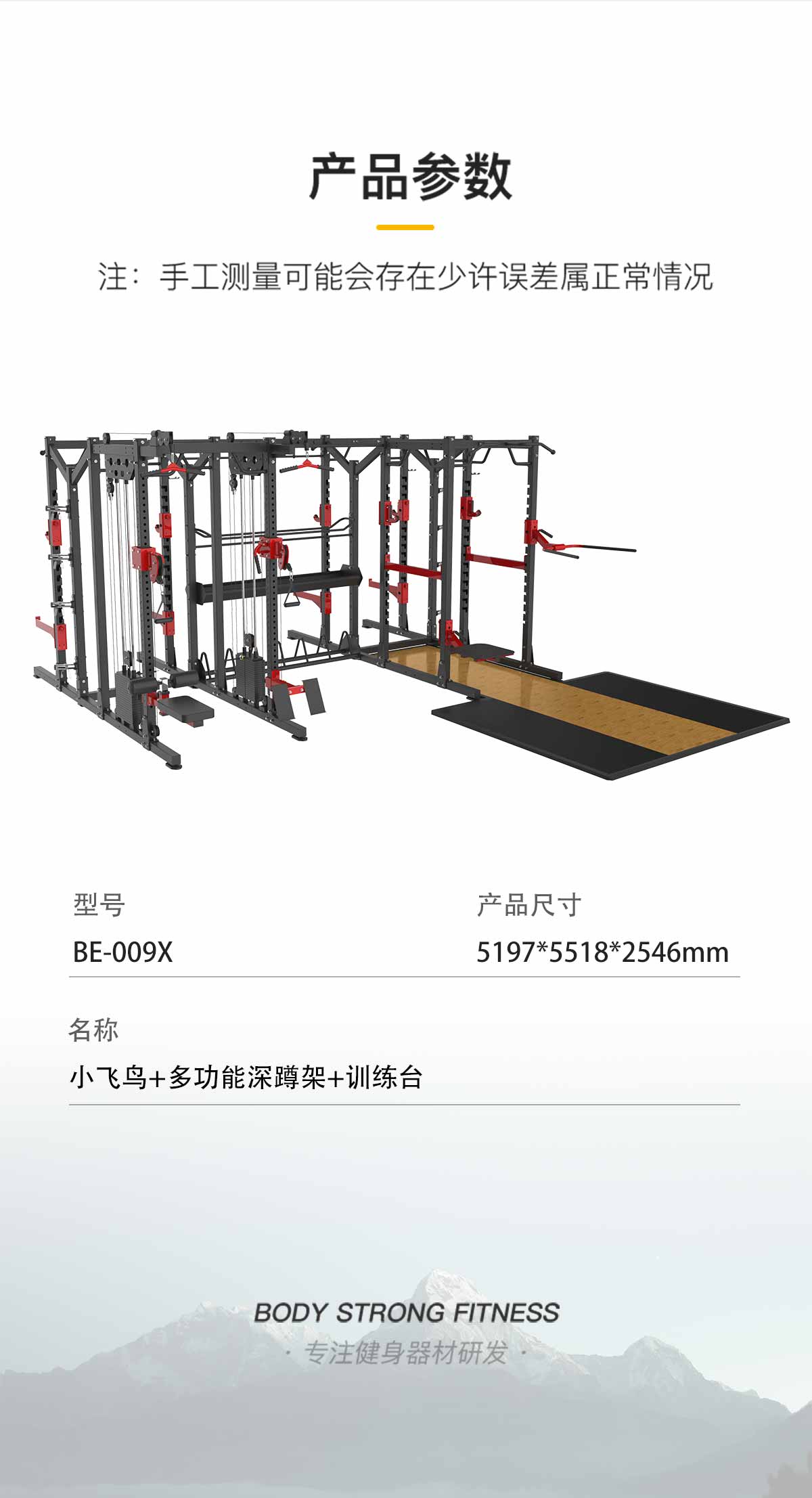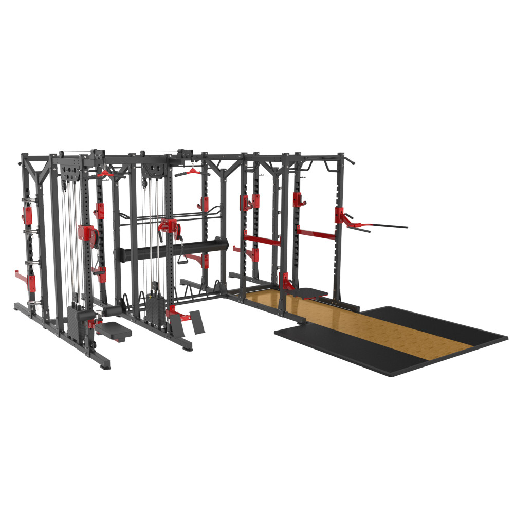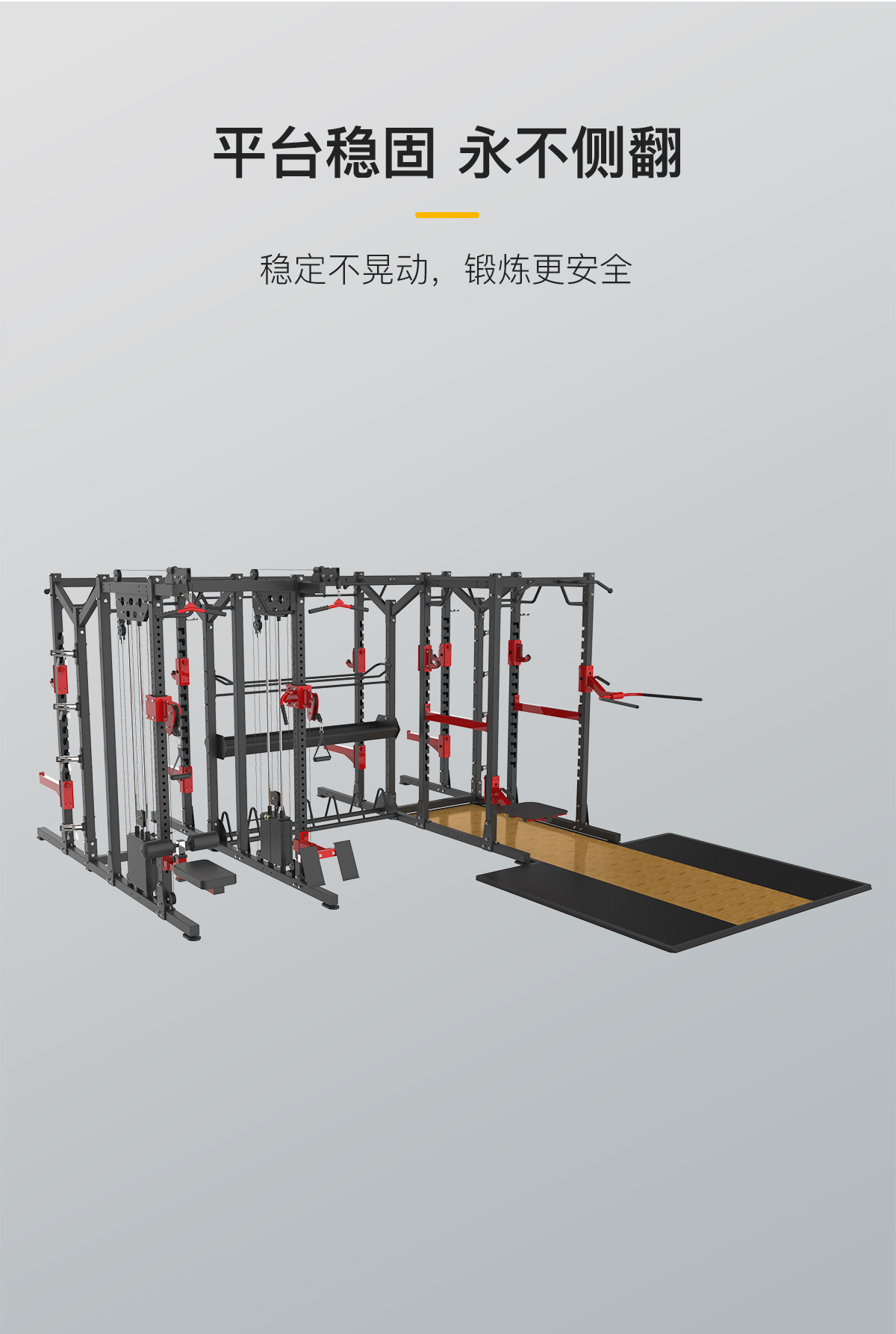 多功能鏈接附件+單杠鏈接附件+跳臺附件+雙杠附件+杠鈴片儲存鏈接附件+自由儲存鏈接附件+球類儲存鏈接附件+組合單排收納模塊+前開放式深蹲架功能模塊+多功能深蹲架功能模塊+小飛鳥架模塊+多功能深蹲架訓練臺