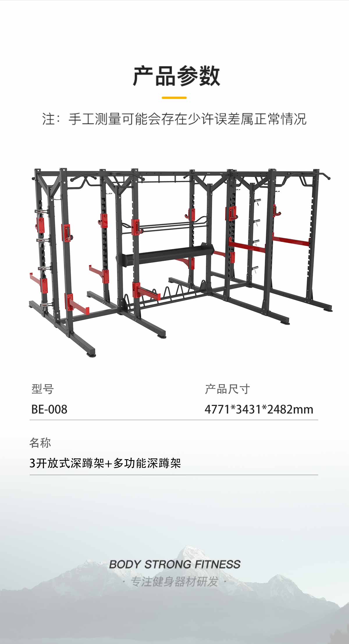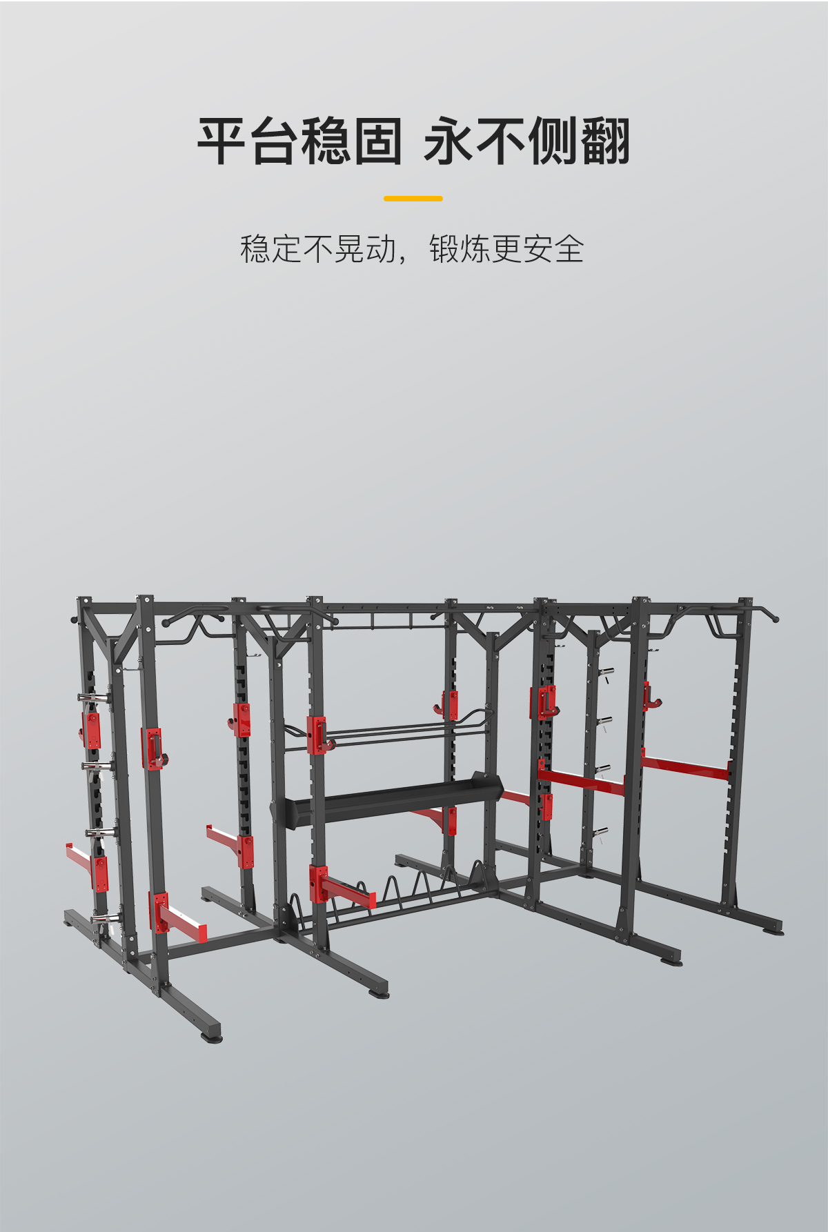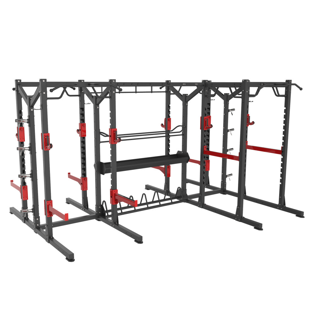前開放式深蹲架功能模塊+多功能深蹲架功能模塊+組合單排收納模塊+多功能鏈接附件+單杠鏈接附件+杠鈴片儲存鏈接附件+自由儲存鏈接附件+球類儲存鏈接附件