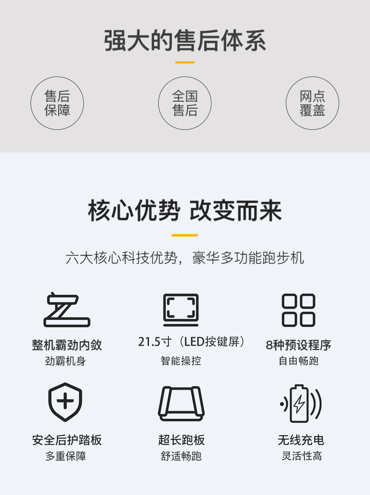 擁有四大產品保險、8種預設程序、超長跑板、無線充電、四重減震技術及自潤滑功能